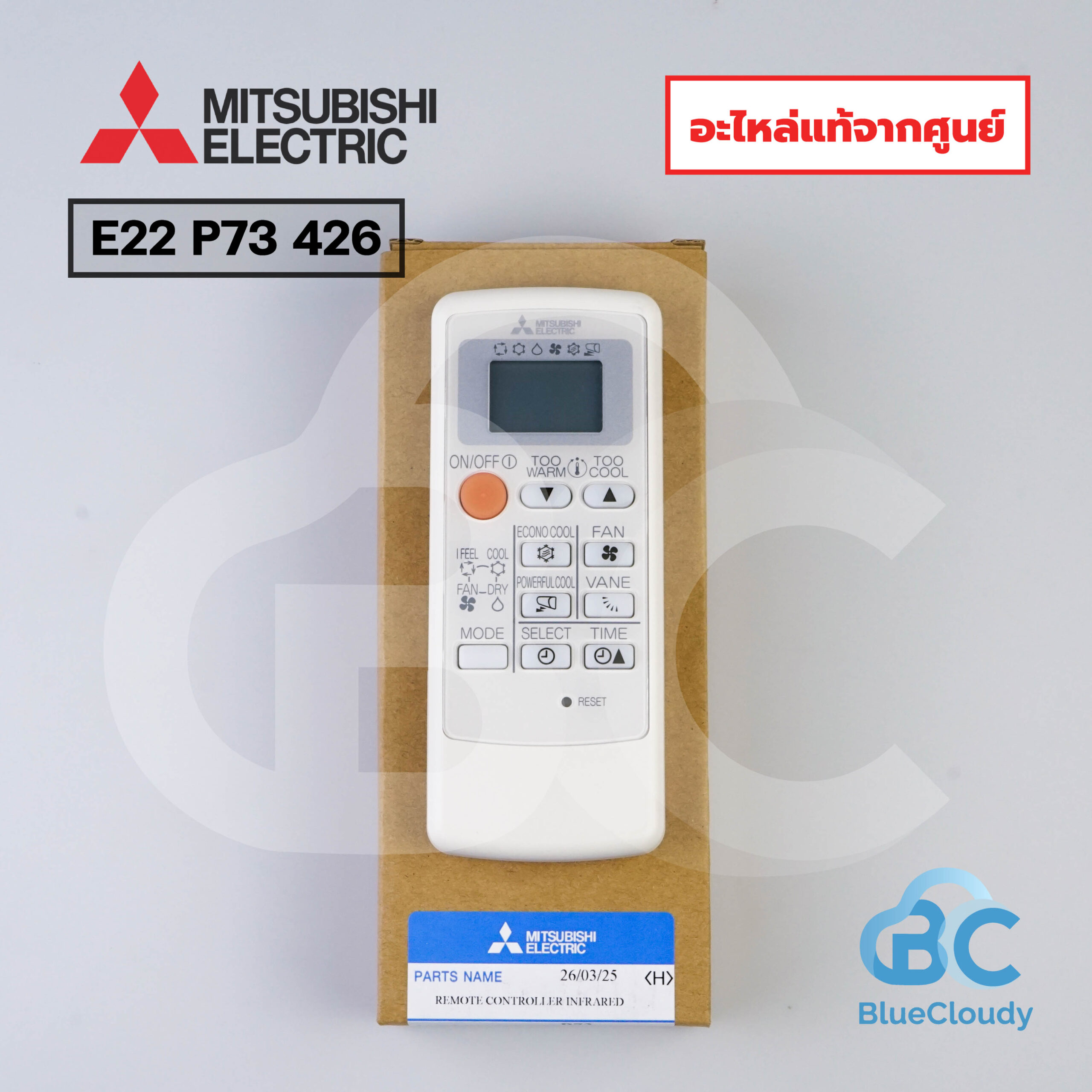 ![E22 P73 426 รีโมท Mitsubishi Electric [อะไหล่แท้จากศูนย์] - Image 3](https://www.blue-cloudy.com/wp-content/uploads/2025/11/DSC6253-scaled.jpg)